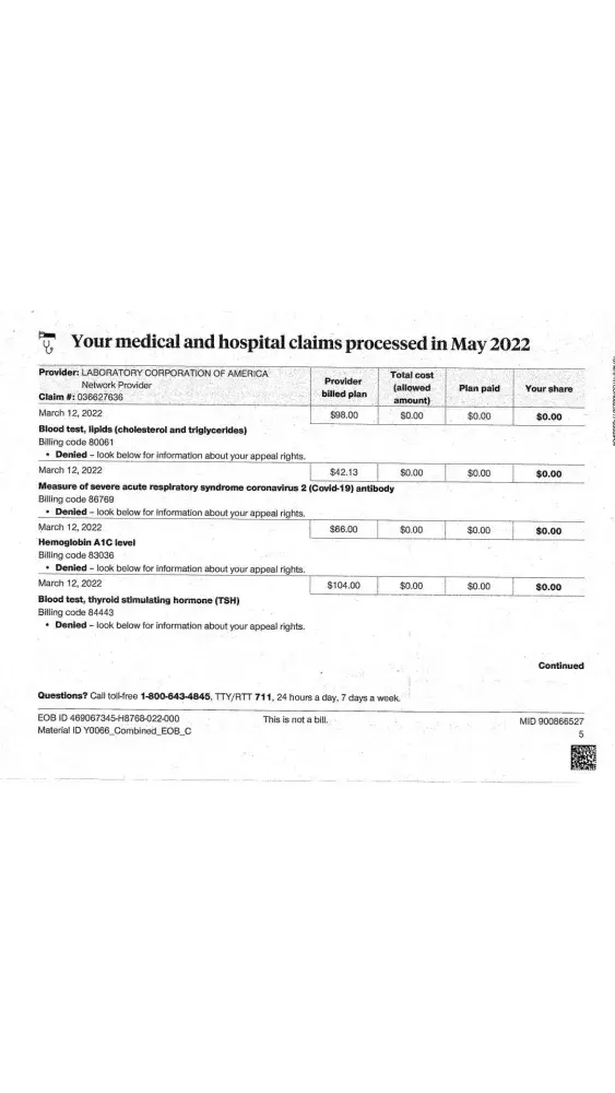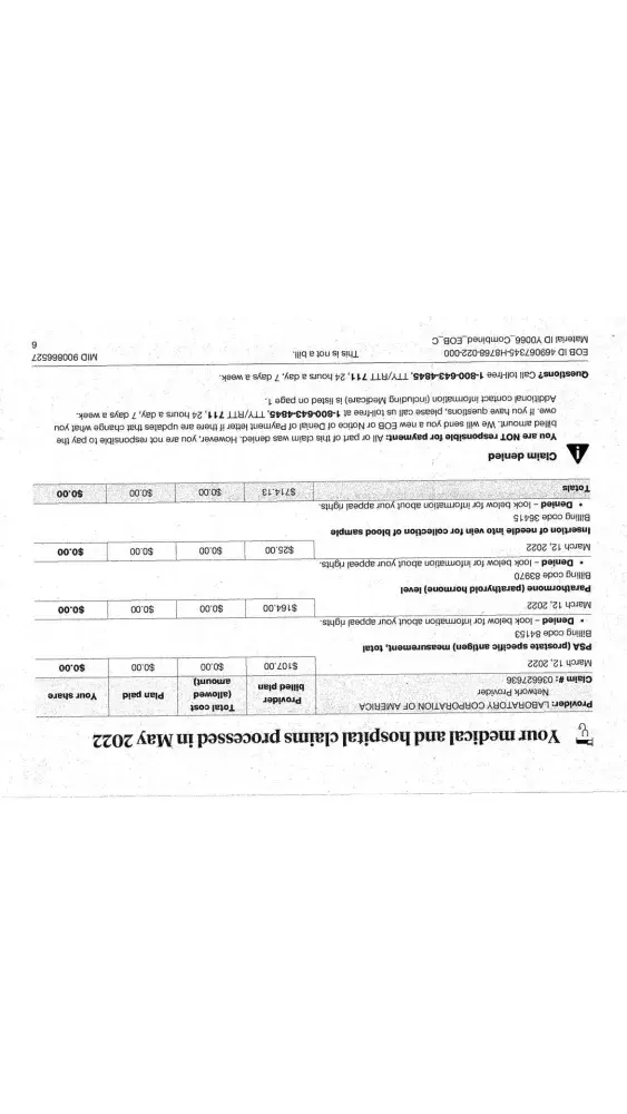 Claim # [protected] for routine blood work for yearly checkup was denied.