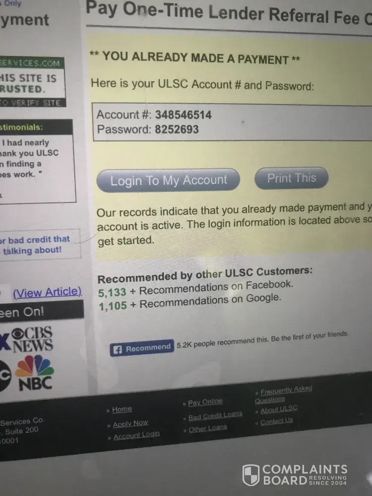 ULSC specializes in helping people with bad credit get approved for personal loans and lines of credit. If you have bad credit or no credit, they promise to help get you a loan. I am afraid you can’t trust this company!