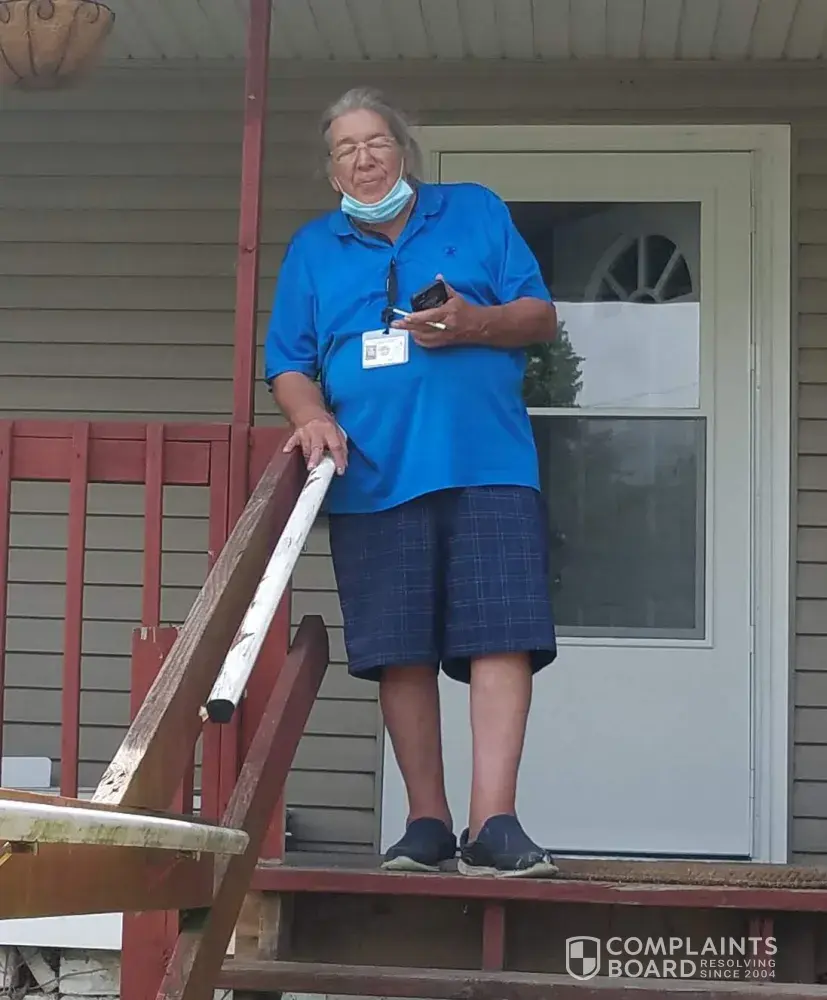 I also see multiple complaints on this site that are relating similar events. If these workers TRESPASS by entering home w/o invitation and don't wear masks-how many people he is infecting with the Covid virus. Unbelievable!