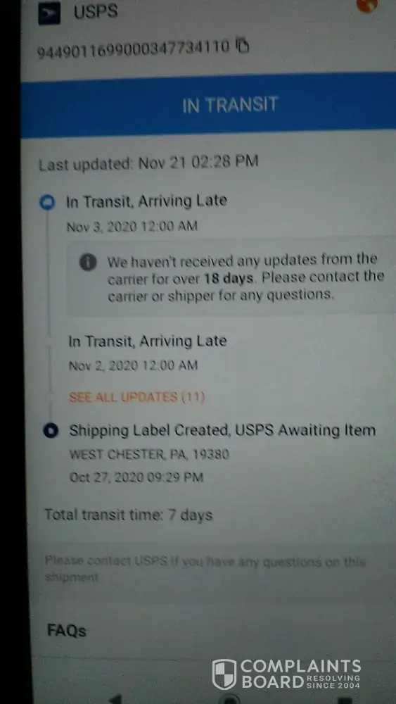 United States Postal Service [USPS] missing items and shipment delays
