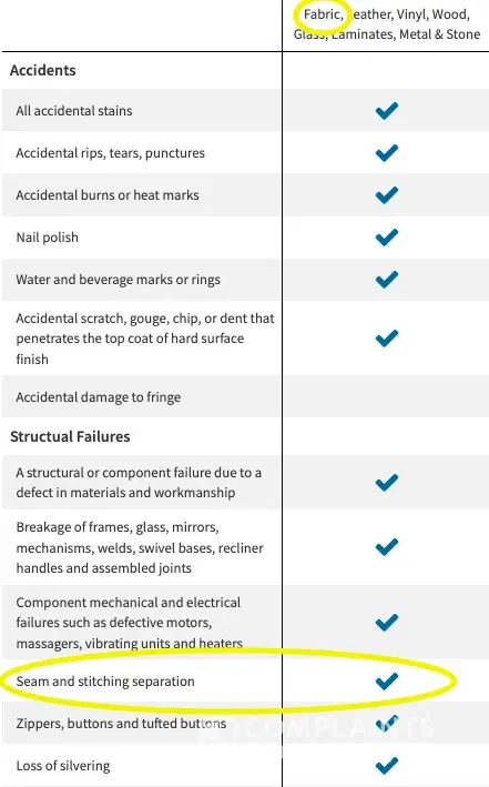Recommendation: Do not trust that this protection plan will protect your furniture.