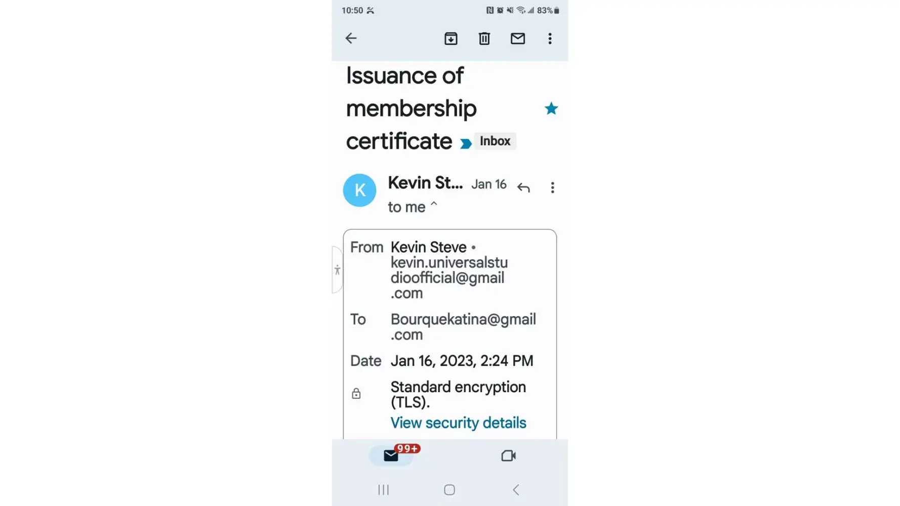 I received an email confirming my payment & issued documents stating I legitimate member.