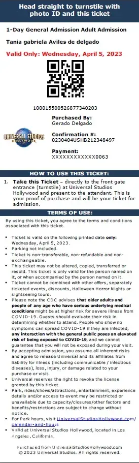 Thanks for existing. We purchase 3 wrong tickets from Universal Studios Hollywood on 04/04/23 via internet. but we in Orlando, so next day 04/05/23 we visited Universal and we was unablle to enter (My wife,son and me) so we forced to repurchase 3 more tickets. We did asked for help for a refund on 3 tickets and all we recieved was business card with a phone number. I attempted to make several calls so when the answer ther was no refund option and since that date I had no resolution. I paid with my credit card and we are international visitors. Thank you