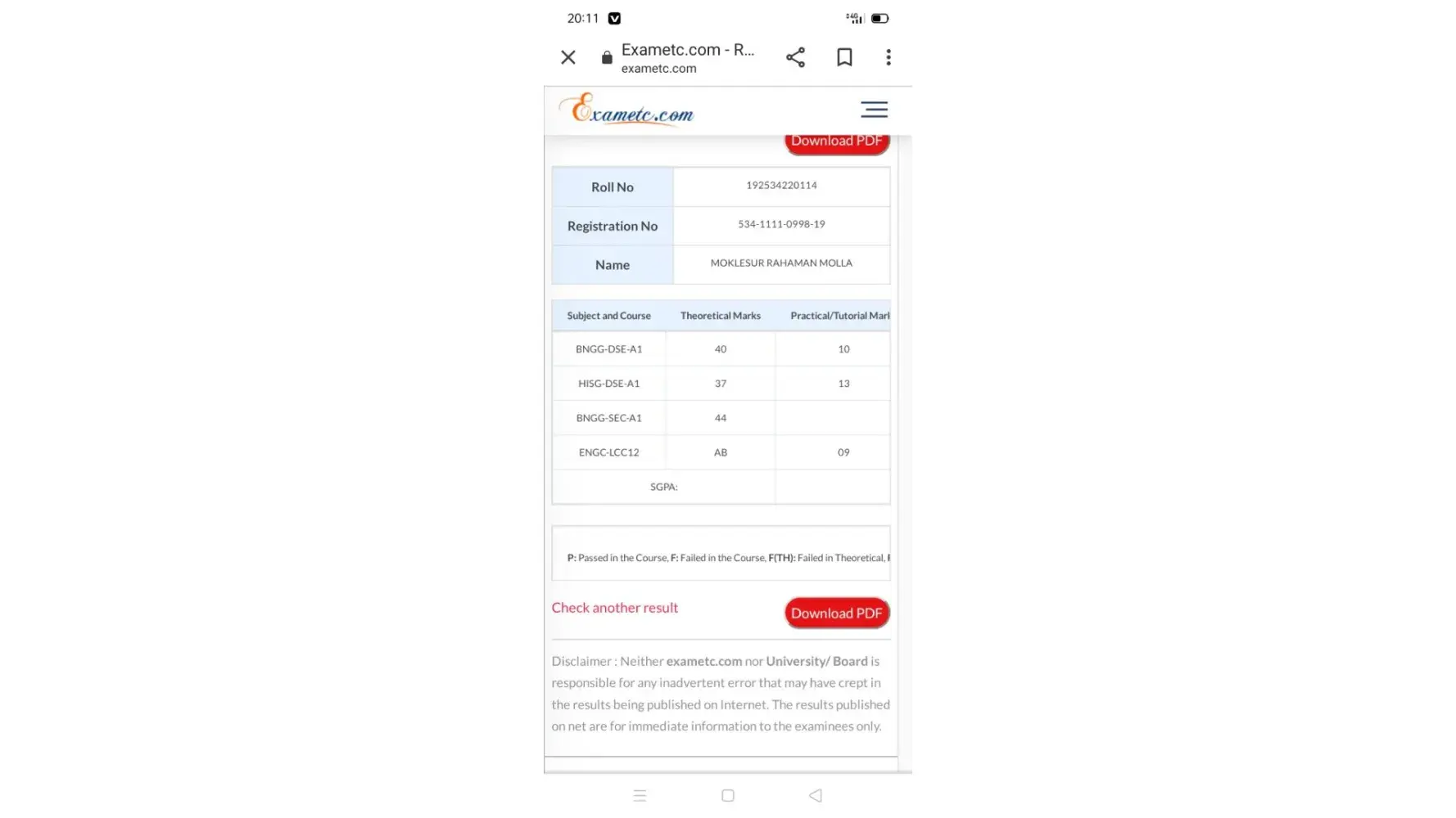 5 semester results English lcc 12 AB TH (F) but my email id correct. Online examination