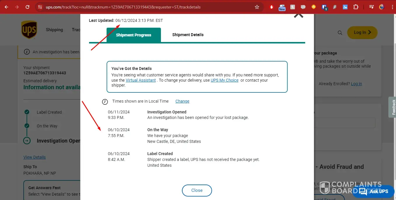 UPS complaints: history and resolution overview