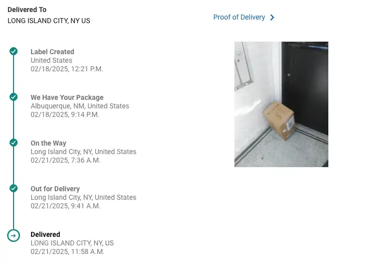 Tracking says package delivered. It wasn't. The proof of delivery, a photo, shows someone else's yard. Not mine. Had a hell of a time getting past an automated voice "help". Spoke with reps (plural). They would not own their error and insisted that I had to track back to the shipper for re-imbursement. Horrible experience.