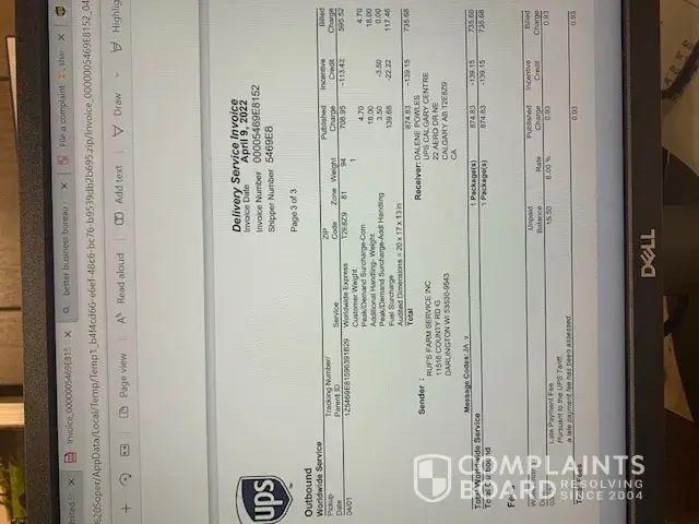 We sent a package next day air to a customer n Minnesota on 3/10/22. We had reused a box and removed previous labels/stickers, UPS flagged the box thinking it was hazardous material (no indication it contained hazardous material) and it sat in warehouse in Milwaukee. After several contacts and request to return package to us UPS sent the package to CANADA! noted their mistake and rerouted it to our customer in Minnesota, even though we had requested per their instructions that it needed to be to be returned to us the sender. Customer received it 4/6/2022. UPS charged us for Worldwide shipping, due to UPS sending to Canada! $735.00. I contacted them on May 2, they seen where it was done in error and they said an account rep would call us back to get it corrected, I also filed a dispute on their online billing system. May 17, have never heard a thing back from UPS, called again and was told the exact same thing, account rep will call us back with in 24 hours. It's noted right in their information that they made the mistake, but nobody will correct it. And when I asked to speak to someone to get it fixed they have no body who can fix it. They even have it noted on their online info that the dispute was denied.