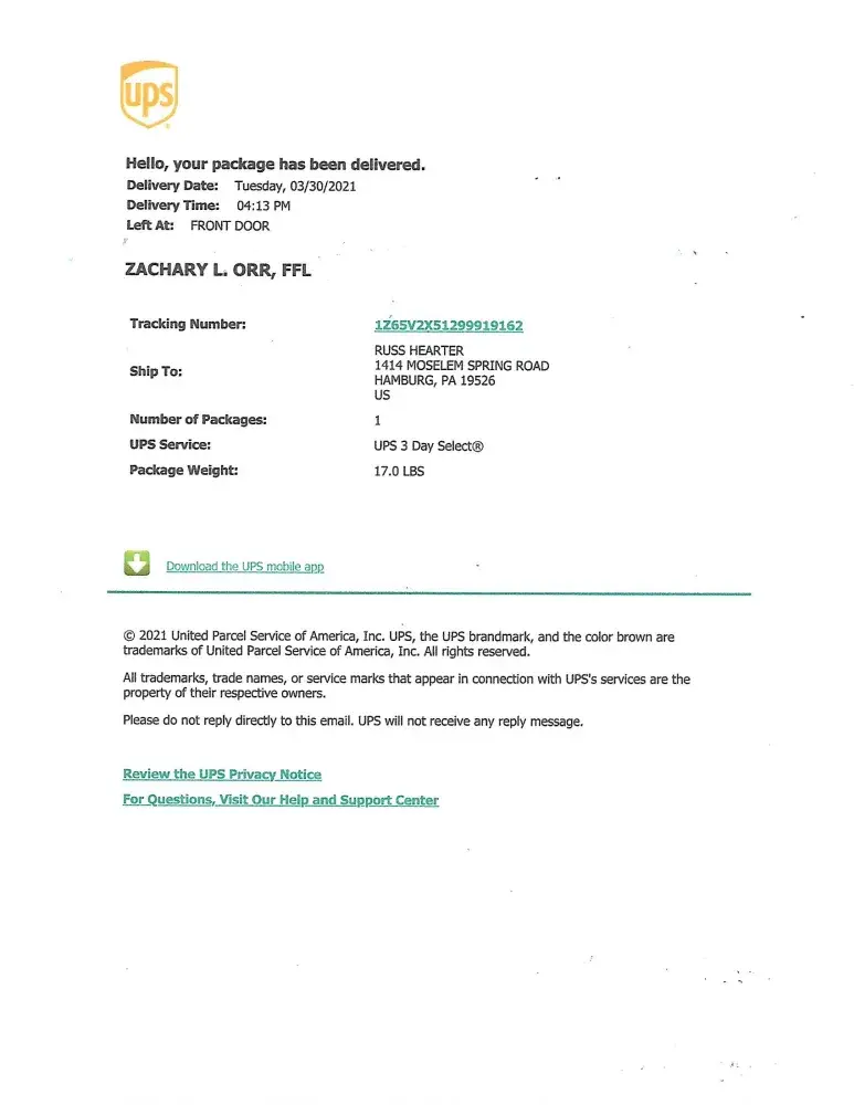 UPS Firearm Delivery