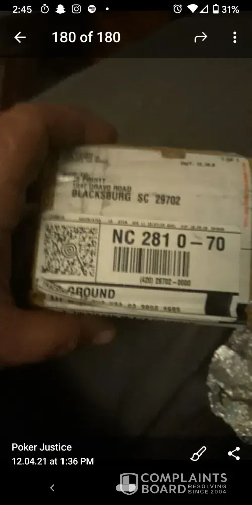 Such a scumbag service... How long do they think they can steal before they are dealt with? 5lb box to a 58 gram box in NC