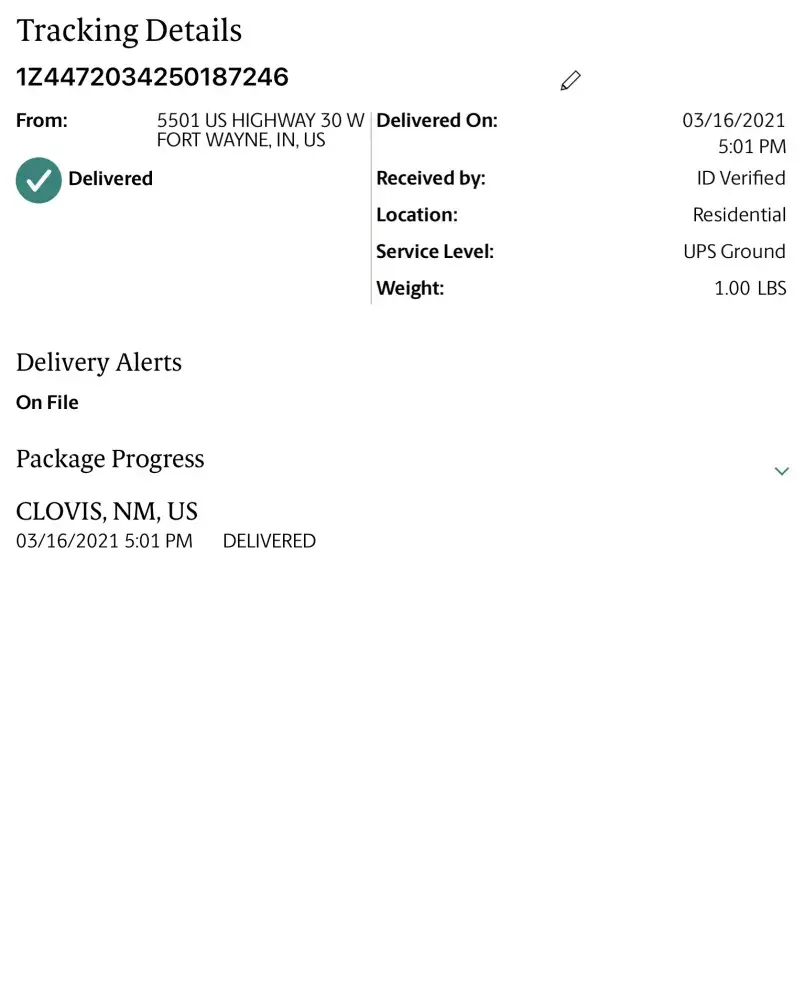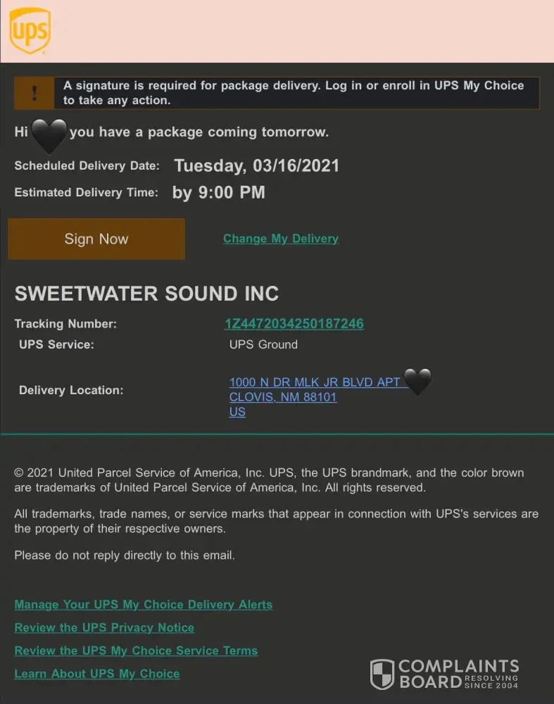 I've been expecting a package from Sweetwater, since the 5th of March. The package finally gets picked up and distributed via UPS; I get an email stating my package is arriving today (03/16/2021), I am patiently awaiting. I receive an email stating that my package has been ‘delivered', yet I never received it. UPS hasn't knocked on my door, nor have they...
