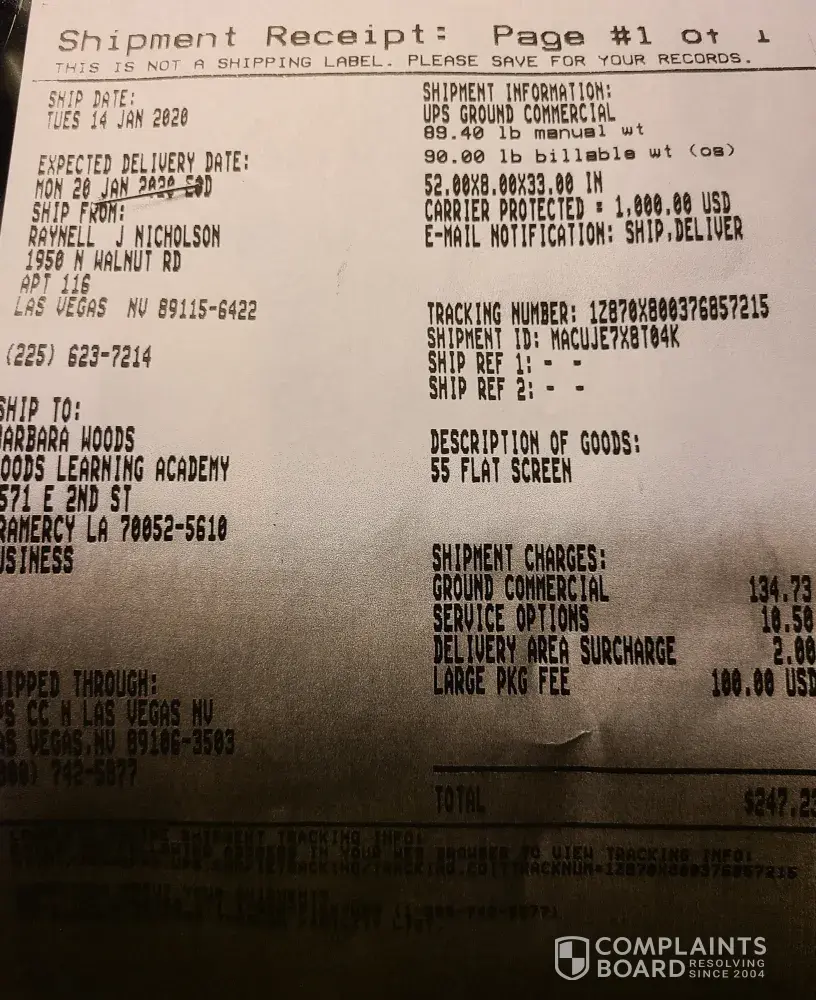 September 18, 2020, over 9 months of not getting any help of refund of my shipment from UPS Las Vegas to Barbara Woods Learning Academy, Gramercy, Louisiana, that was damaged and loss, according to UPS. I filed a demand letter to the Claim's Adjuster, assigned to this claim and their registered agent. Unfortunately, I was made aware that I needed to be...