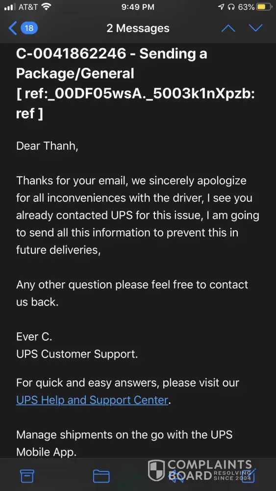 We are an agent for a cargo company who needed to send at least 200-1000lbs a week with UPS in the Phoenix area. I've repeatedly (4 times) contact UPS customer service regarding a local pickup driver refusing to scan our packages upon pickup leading to multiple lost and untrackable packages. The first two representatives who stated they would report but the same driver showed up and still refused to scan. The third representative simply gave me a link to submit claims. So basically he is saying that I should just wait until a package is lost and submit a claim while offering no solution on how to prevent loss packages while in the possession of the UPS driver. Since we had paid for the shipping service, why would it still be our responsibility, our lost if it was already handed to the UPS driver just because he refused to scan upon pickup?