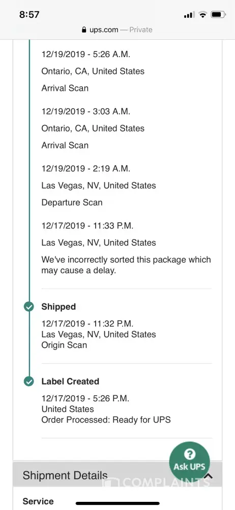 Hi, I’m a claims administrator for my company. Per UPS.Com, they incorrectly sorted the package. You should escalate the issue to a manager and get a refund.