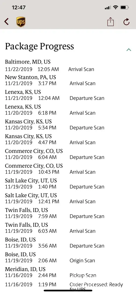 I paid extra for my package to be delivered at 1030am, and was promised by US it will be delivered today and they said no at 9pm Jesus Christ I spent all day waiting for a freaking package for nothimg, UPS get your act together stop promising customers false time frames it's not fair for us people to take days off work to wait for a delivery all day and get told at 9pm your delivery will not arrive. So annoying and frausterating, first and last time I use UPS for anything. I will be calling for my reimbursement.
