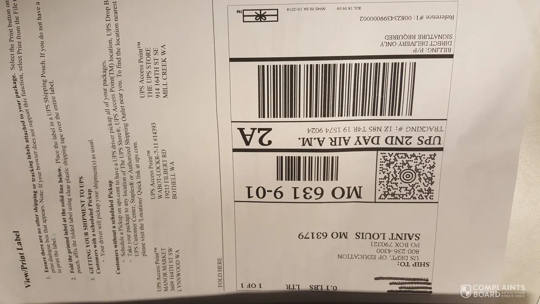 The journey of the envelope started in Washington State arriving in Missouri. So, no one at UPS noticed the PO Box address? How many times was the shipping label scanned? If UPS was focused on customer service and contacted the shipper (me), I could have rerouted the envelope to the alternate address. This would have saved gas, time, and money. I would have praised UPS for going above and beyond. Instead, UPS created a hardship for me because the documents will now miss the due date. I miss the due date even though, I provided my contact info, etc.