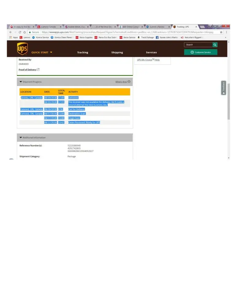 1. Tracking number 1Z189W2W0244584676 Brenda Richard