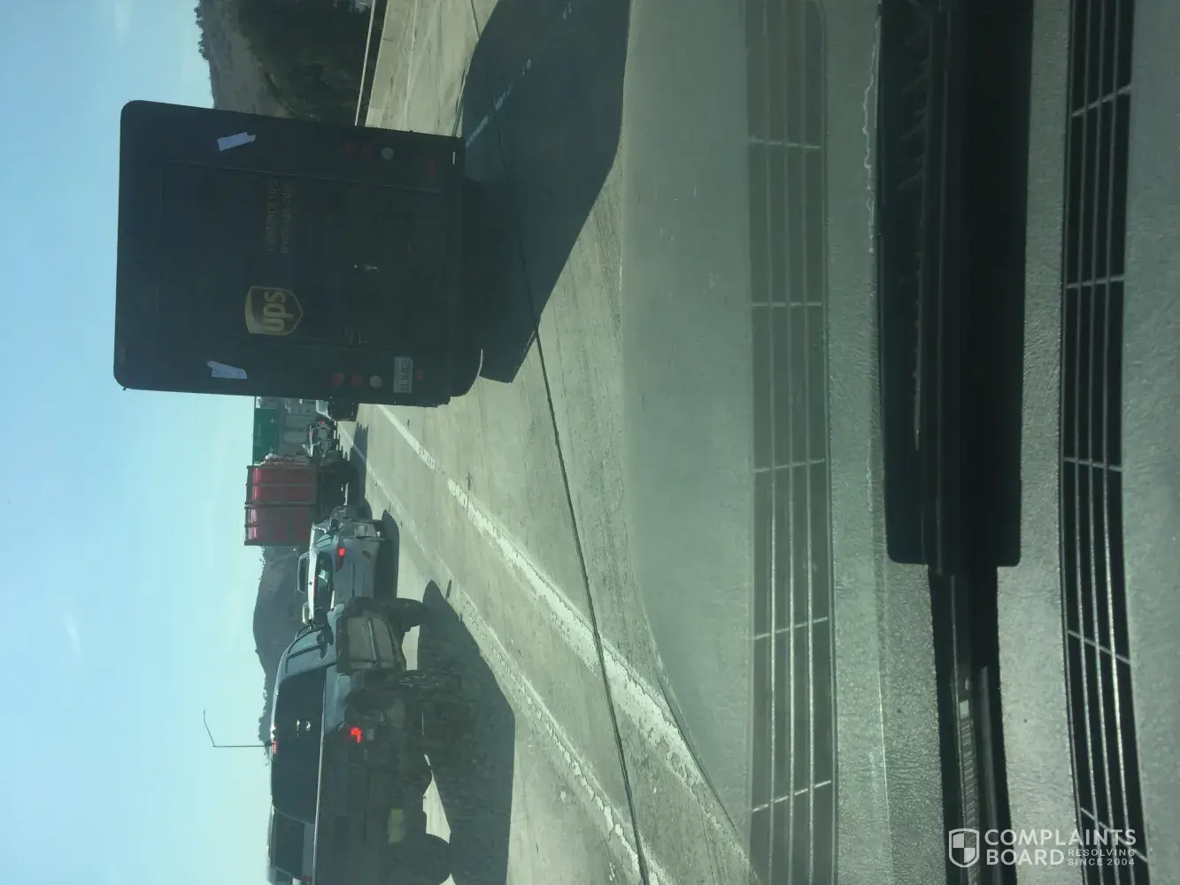 Traffic was backed up and several cars were illegally driving along the shoulder of the freeway to get past the back up. A UPS truck was also driving along the shoulder to get past traffic and cut me off when merging back in to traffic. This was on the northbound 71/ westbound 10 interchange at 4:35 pm on 7/16/2018. The license plate number was 81348G1, the side of the truck had USDOT 021800, and there was a sticker with CA DMV PFR 20.