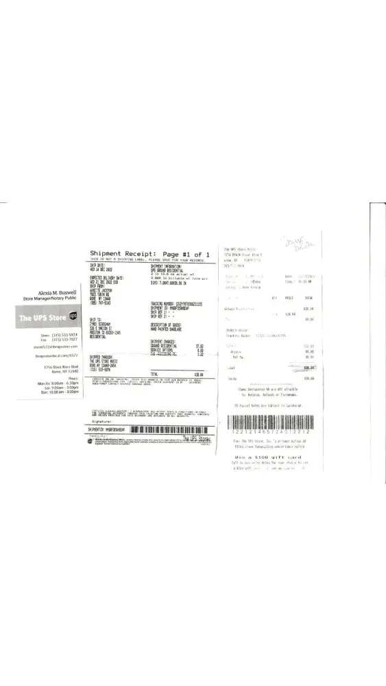 On December 14, 2022 at 11:33 am, I went to our local UPS store in Rome NY to ship a piece of art to a customer in Preston ID. Estimated delivery was set for 12/21/22. I contacted my customer on 12/22/22 to ask if it was delivered to her and it was not. I went on UPS tracking and noticed that the package had not been tracked past the UPS facility in East Syracuse NY, arriving at that facility at 8:42 pm on December 14th. I returned to the UPS Store asking them to please find out what the problem could be, but instead the store manager suggested that I file a claim. She proceeded to do that at the store. I provided her with my email address, a photo of the artwork which is a hand painted antique saw blade, proof of the cost of the blade, and my shipping receipt. I was not given a copy of any paperwork or even a claim number, nor have I ever received any email regarding my claim status. One associate did give me two phone numbers of the East Syracuse facility, but after trying several times to get someone to answer was unsuccessful. I came back to the store on December 29th to ask if there had been any updates and the manager pulled up the tracking number. The update was written as follows: