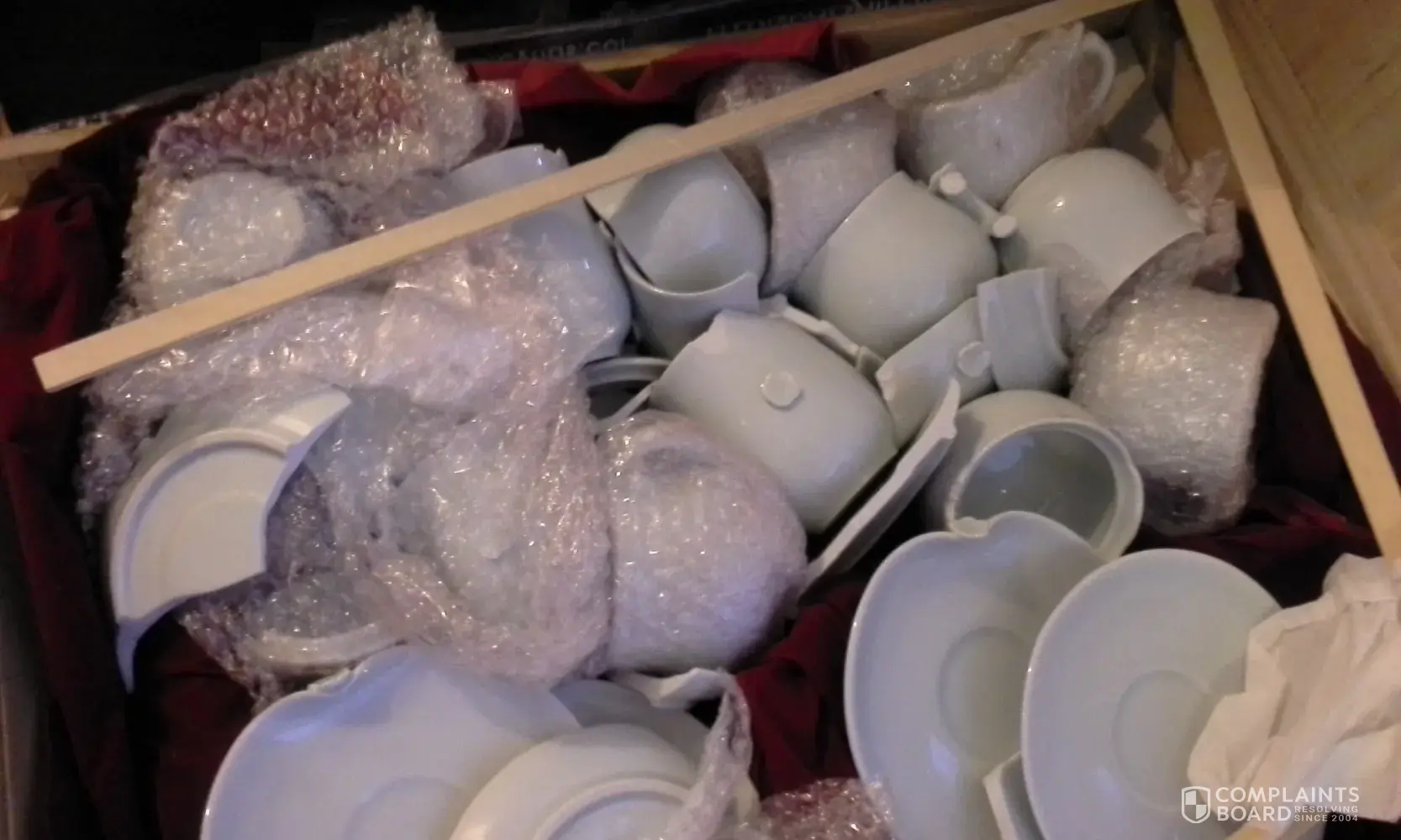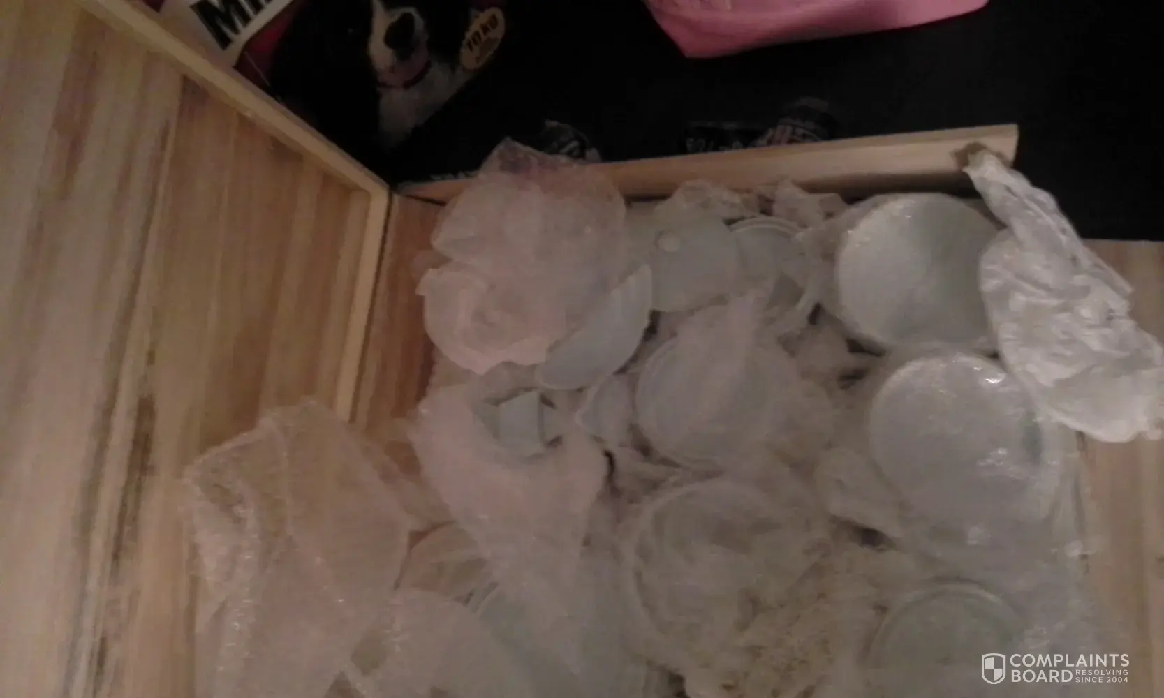 September 4, 2015 7:50 p.m.: The UPS delivery man showed up with three frames and two boxes. One frame is completely shattered and the two boxes of plates are broken (pictures attached). The delivery man said the other two boxes would come the next business day.