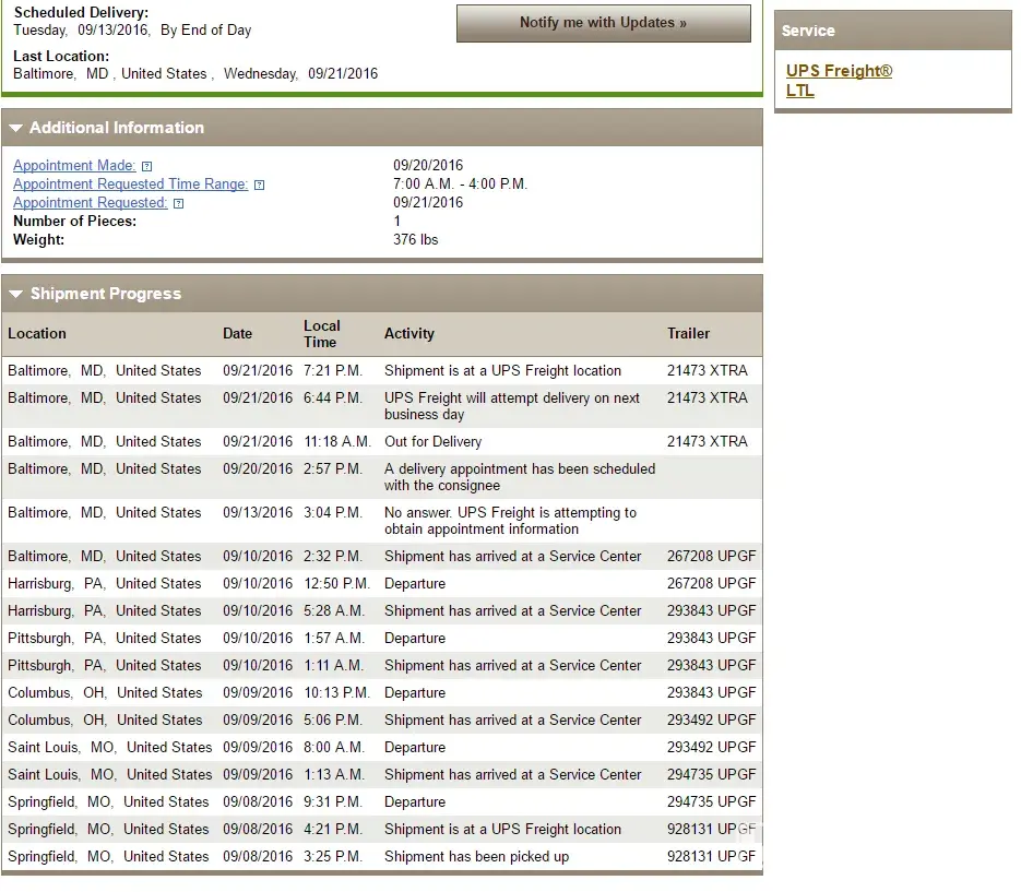 The hours on the phone and the aggravation to listen to their shady excuses that change depending on who you talk to is not worth going though - do yourself a favor and pass on UPS Freight, especially if you actually need a shipment at a certain time.