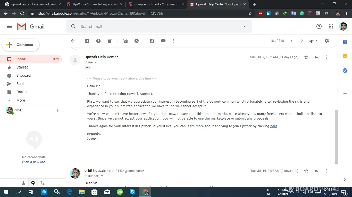 Upwork suspended my account without notice