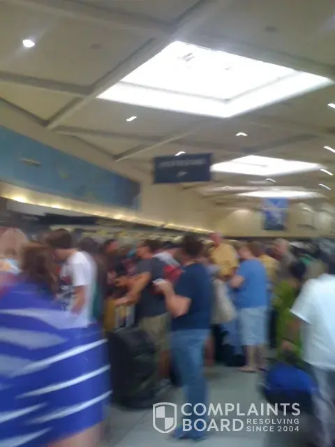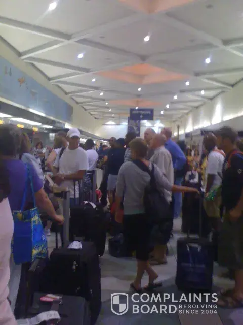The flight home is where the major problems began. Upon arriving to MBJ, on schedule, we were displeased to find a staggeringly long line of people waiting to check in at the U.S. airways counter. There were open “Self Serve” computers, U.S. airways personnel standing around chatting to one another, and well over a hundred passengers in line. After standing in line for almost an hour, we finally arrived at the counter. The woman helping us was pleasant, as per the “Jamaican Hospitality” and she was a tremendous amount of help after informing us that our flight to CLT, #1232 had just taken off from CLT, and would be at least two hours late. Right away we realized we would miss our connecting flight home #2678 to SDF, and she tried everything she could to get us home on different flights, and even trying different airlines, to no avail. I informed her that my husband is on numerous extremely important cancer treating medications, and he only had a couple of more doses. She tried everything she could to get us home that night, but it was obviously out of her control. We had no choice but to get on our flight, with hopes of being put on stand-by for a flight leaving at almost midnight to SDF. We were also told at MBJ that if we were denied stand-by, we would be provided hotel accommodations and meal vouchers for the night. The flight home on #1232 was uneventful until landing and we had to sit waiting on the runway for over half an hour until a gate was available yet again. To be sure, we were anxious as to what we would do when we got off of the plane in CLT.