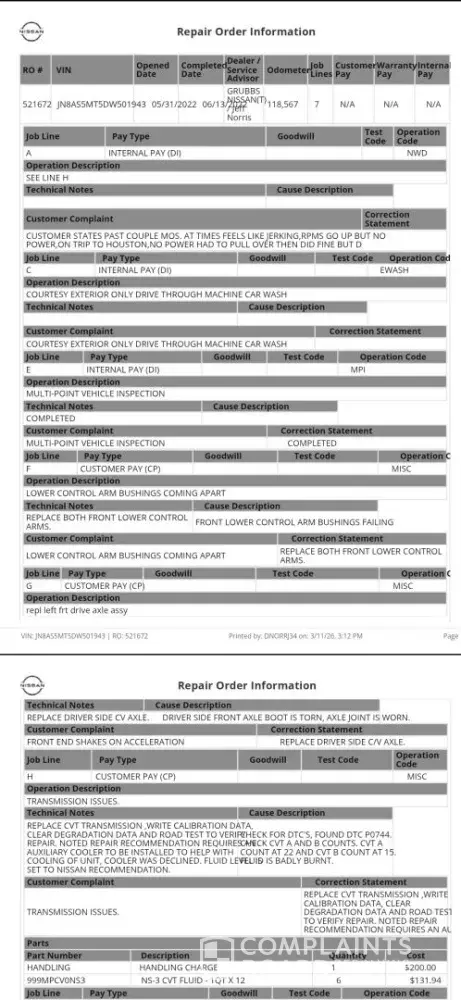 Desired outcome: my transmission axles oil leak a full apology, me/ Nissan records of replacing the transmission, out of pocket lie or full reimbursement ( 2019 contract).