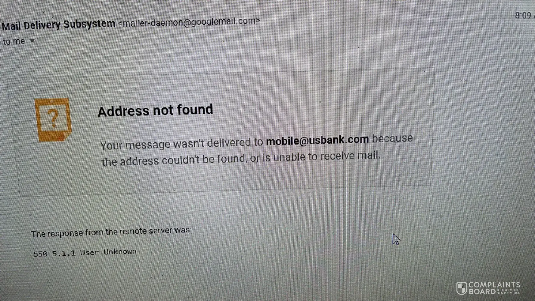 Then, the only email address for customer service — [protected]@usbank.com — bounces back undeliverable!
