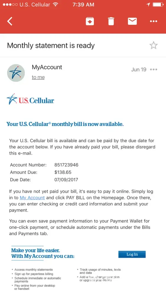 On Tuesday June 20th I received an email stating my bill was ready to be viewed...the bill was only $88.25, I sent an email requesting explanation. Instead of an answer I received an email that same day an hour later only this time the same bill for the same billing period now read $138.65 is due on the same day for the same billing cycle
