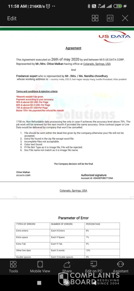 Read full complaint and 6 commentsOverview of US Data Corporation complaint handling