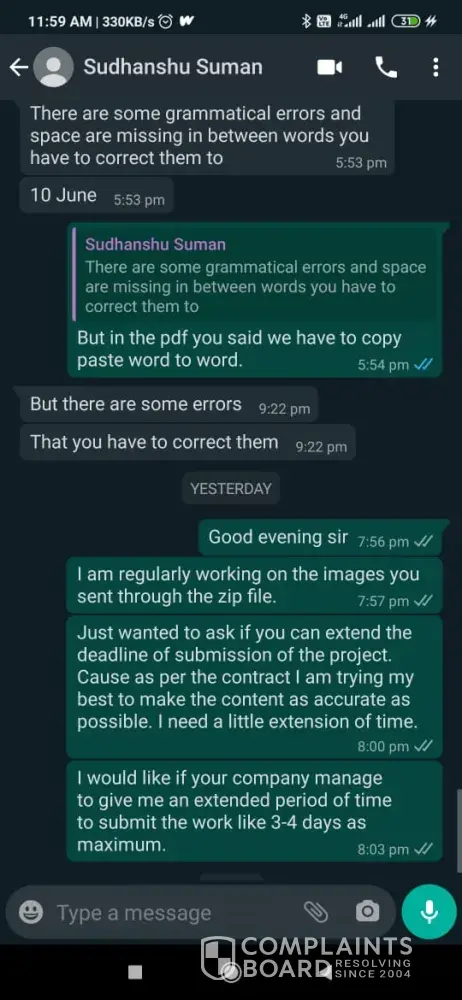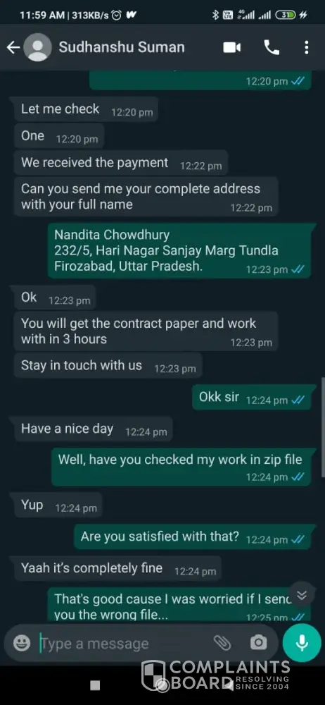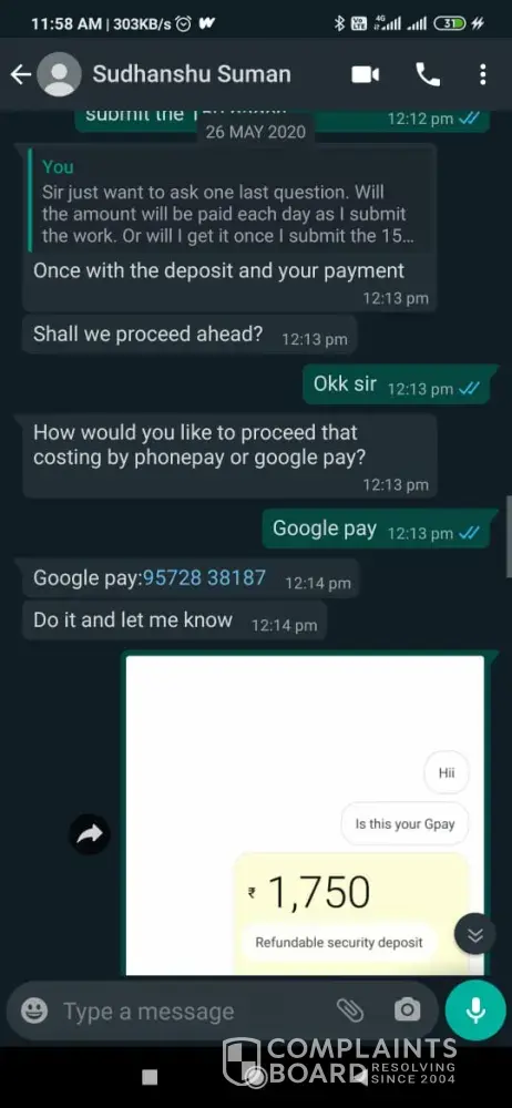 Read full complainttyping job submitted but payment overdue - avoid mr. sudhanshu suman