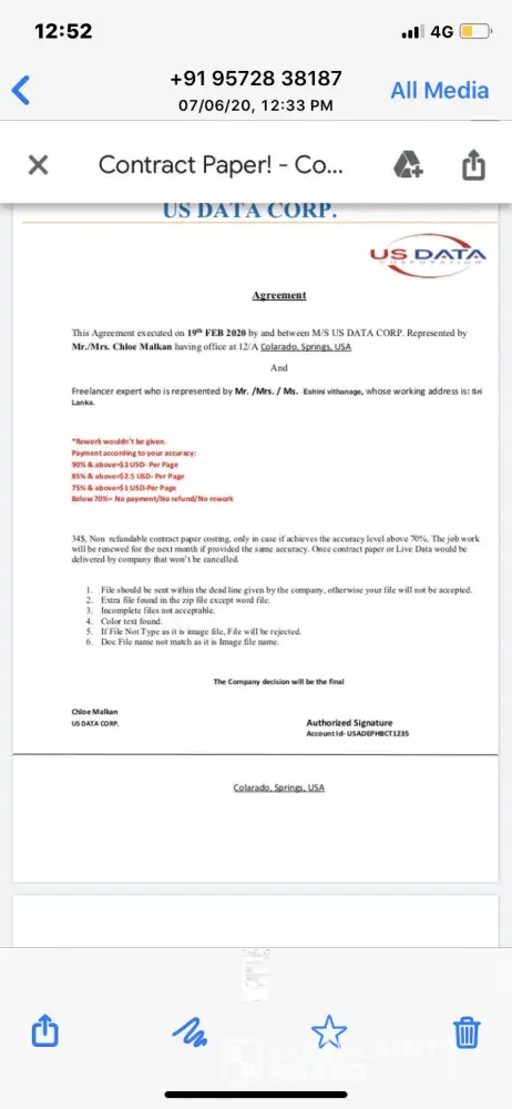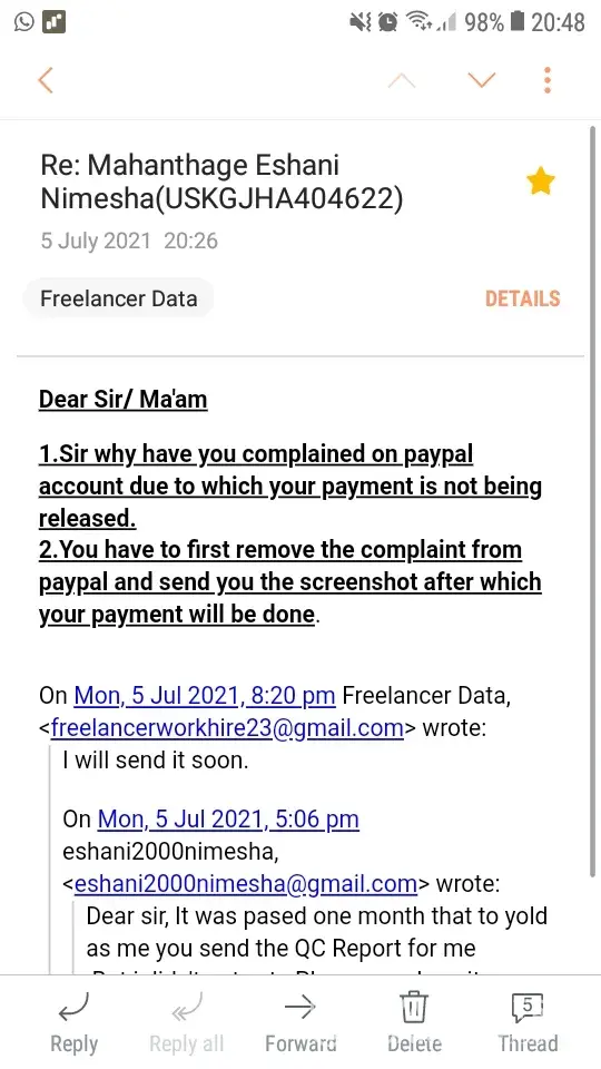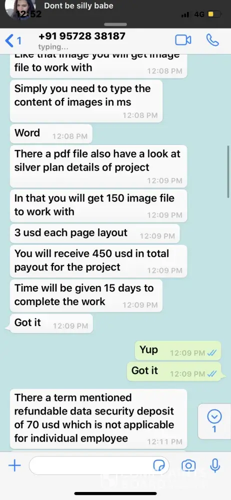 lastly i got a job through freelancer.com. It was a copy typing job which I completed and submitted within the time frame. The above mentioned name stated that the payment would be done within 2 business days. I submitted the job on 14.09.2019 and up to now on 16.10.2019, I have not received any payment. The guy is not even replying to my emails or messages sent to him on Whatsapp. I have been chasing him since the 2 business days were behind.