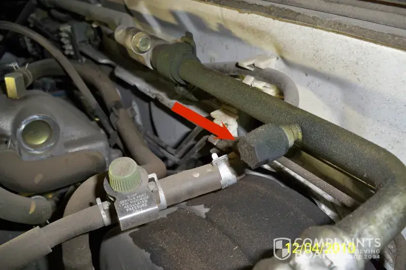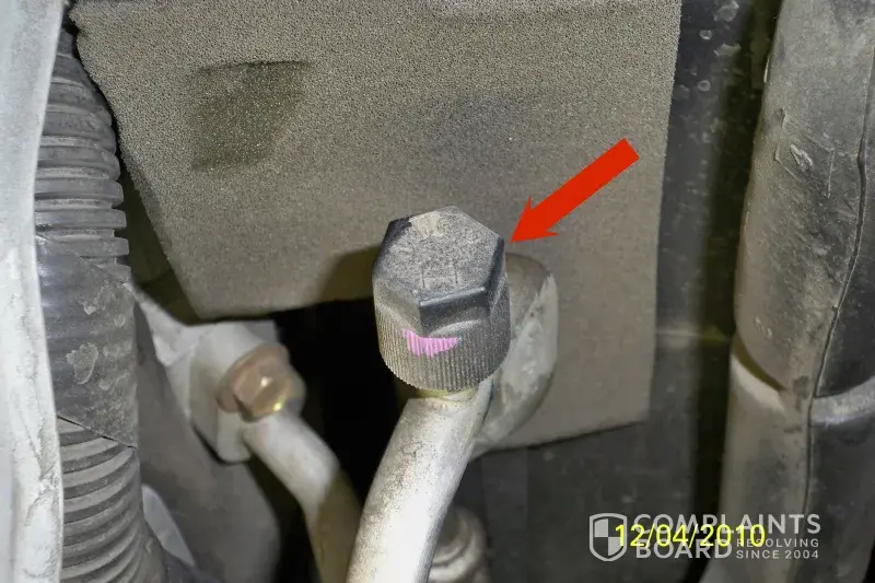 I took pictures of the caps where you fill the AC for a recharge and sent them to Brakes plus, It did look as if there was a leak as you can see in the photos. The leak was from my brake fluid I had to refill after leaving jiffy lube which is another story. It's also clear they didn't test the pressure without removing the caps which I was charged for. I asked how they knew the hoses had leaks if they didn't test the pressure when they said they did test the pressure and charged me for that test. I only knew about the charges after we left the view of the truck and was in the lobby.