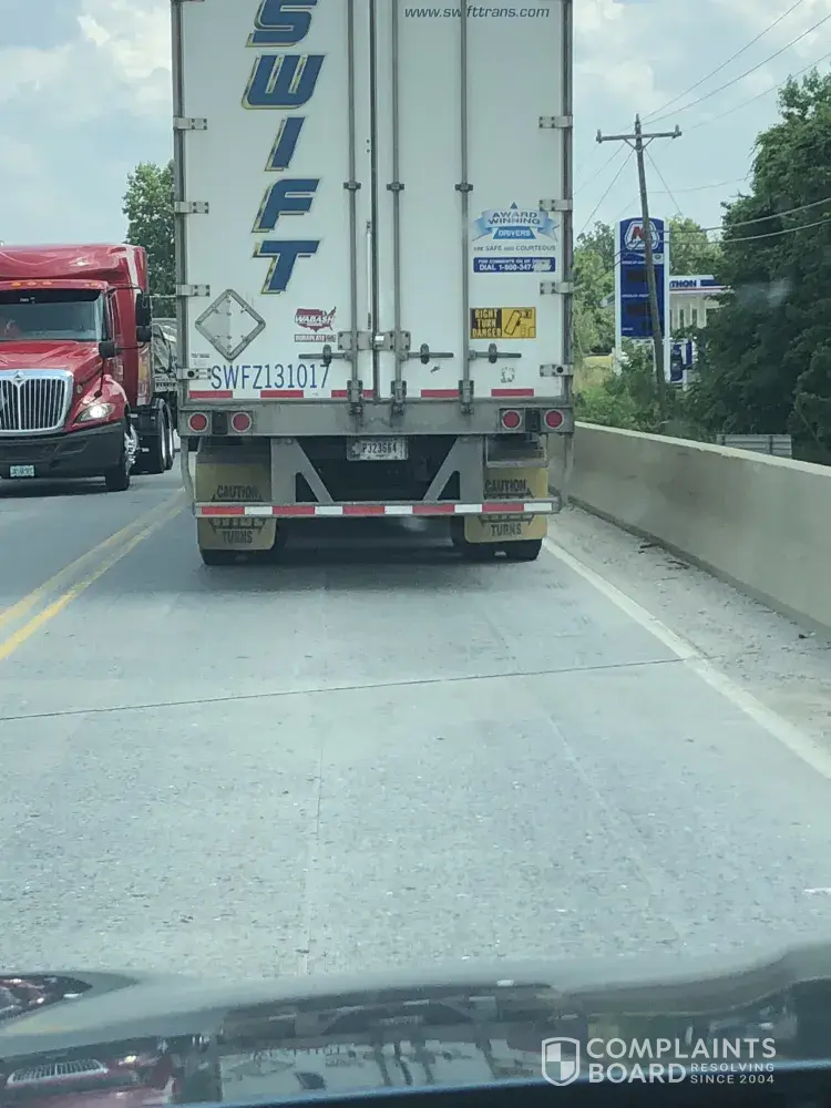 Last week I was on 81 headed North & this Swift Trucker nearly ran me off the road. I thought I was going to die! I didn't get the tag number from the back of the trailer, but it read Indiana. But, the number on the back top area was #170873