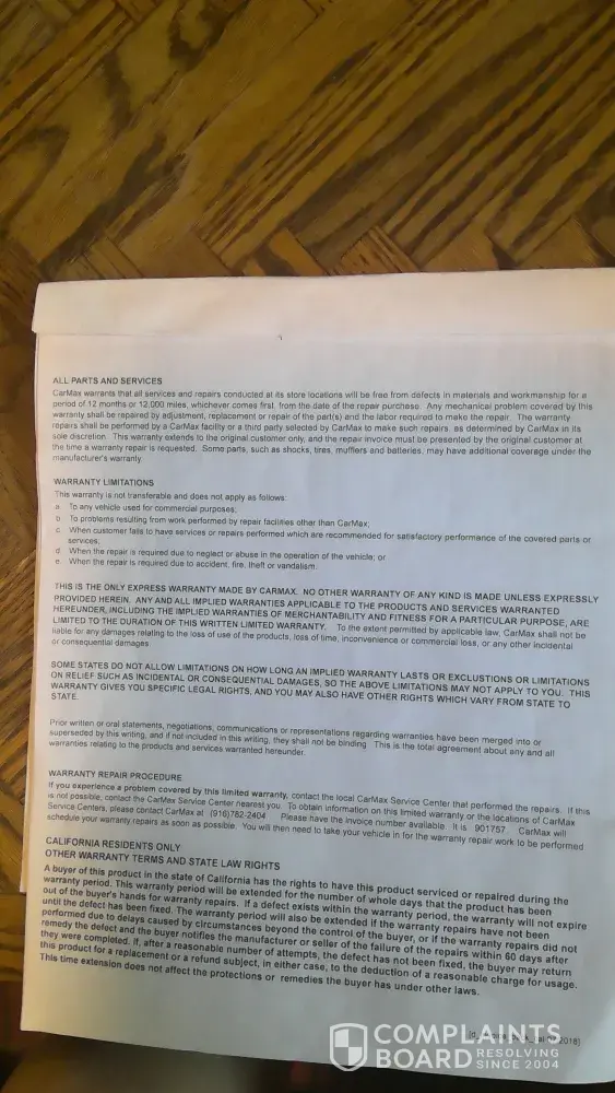CarMax - Failure to repair and honor warranty