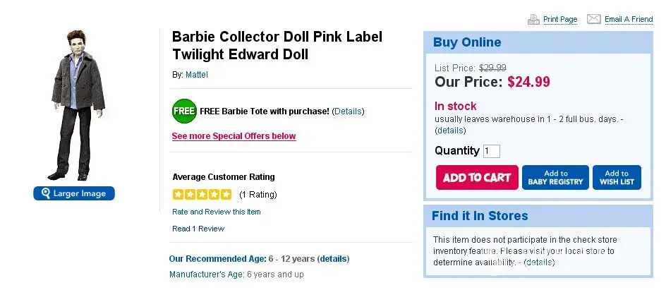 ToysRUs has LOST my business for being uncooperative, uncaring, and dishonest. I spent the first four months of my pregnancy looking for just the right crib, and I found it at ToysRUs/BabiesRUs. After repeatedly trying to order it online (which was impossible), I found one at our local store. Only One! But, they assured me that this was an item they stocked and that they would have another.