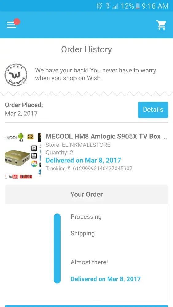My order history is empty I deleted my wish account now I don’t remember on what I ordered it my order one is today n few others orders on 12 July