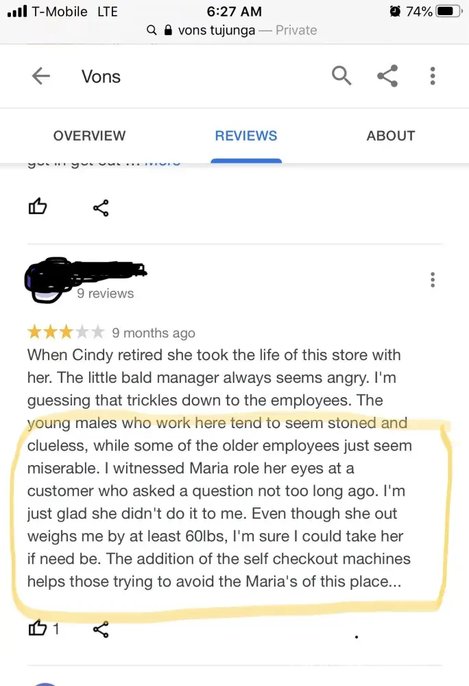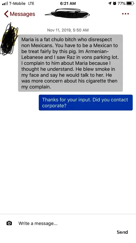 Had a negative customer service experience at this location while using self checkout. The culprit, an extremely large/intimidating Mexican woman named Maria became agitated and angry when I needed her help purchasing produce. When you purchase produce the machine will tell you to accept the weight and then tell you to move the produce to the bagging area. Next the machine will say incorrect weight. It never fails. No matter what produce you're purchasing it does this. My help light automatically started flashing. I made eye contact with her and motioned for her to please come help since she ignored the help light. She sighed, rolled her eyes, it was all very condescending and aggressive. I was terrified. She's twice my height and size, and is mad at me because she has to do something other than look at her phone. A little googling showed multiple reviews and complaints regarding Maria. I informed corporate of all this and nothing has changed. How do I know? Although I refuse to step back in this store with that thug here, my online review has received message responses. One just recently alerting me they've had similar experiences with Maria. Unfortunately some seem too cowardly to complain. Not that I blame them. Who knows what gang ties this thug has?! In my haste to get out of there I snapped a photo of her snarling at me as I bagged my groceries to go. It's grainy, but it shows exactly what I'm talking about. Alex Hernandez is the "store director" Jesus is the stores manager, and Maria is the supervisor. I concluded that in order to get respect at this store you have to look like those who run this store. I'm not Mexican, so...I can't believe corporate allows this. I'm attaching the photo of this thug snaring at me. Snarling at me while she's on the clock and I'm a paying customer. It's so appalling.