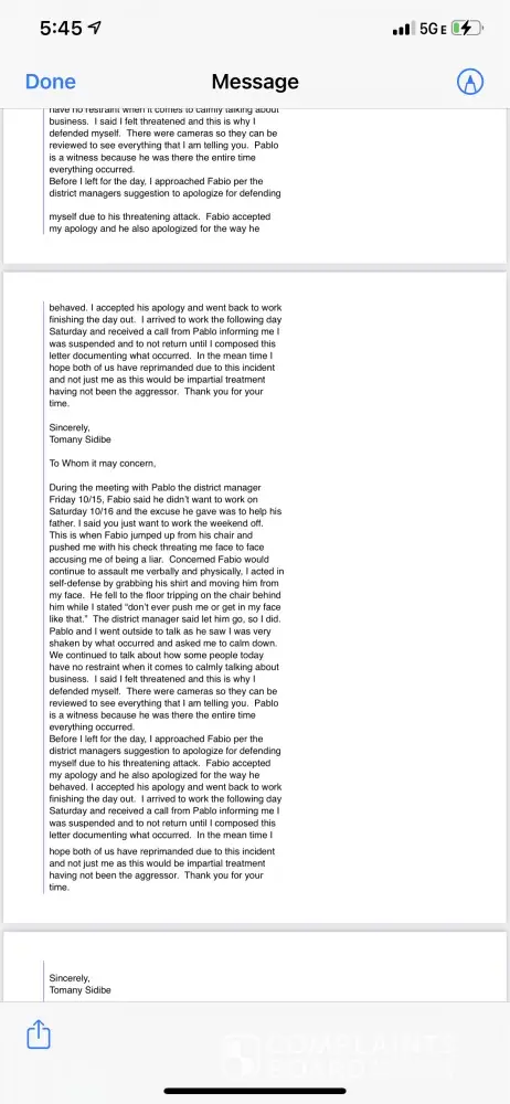Why I'm getting fired please review my case I attached email I sent to Pablo what happened please review my case all my coworkers don't like because I do better job than and I sales better than theme I'm making more money than them they get jealous bout me they don't want me there they try so many different way to get me in trouble review the video what happened Friday 10-08-2021 please