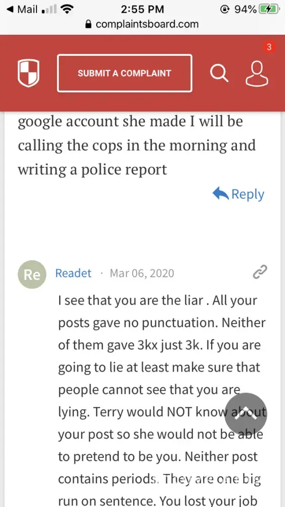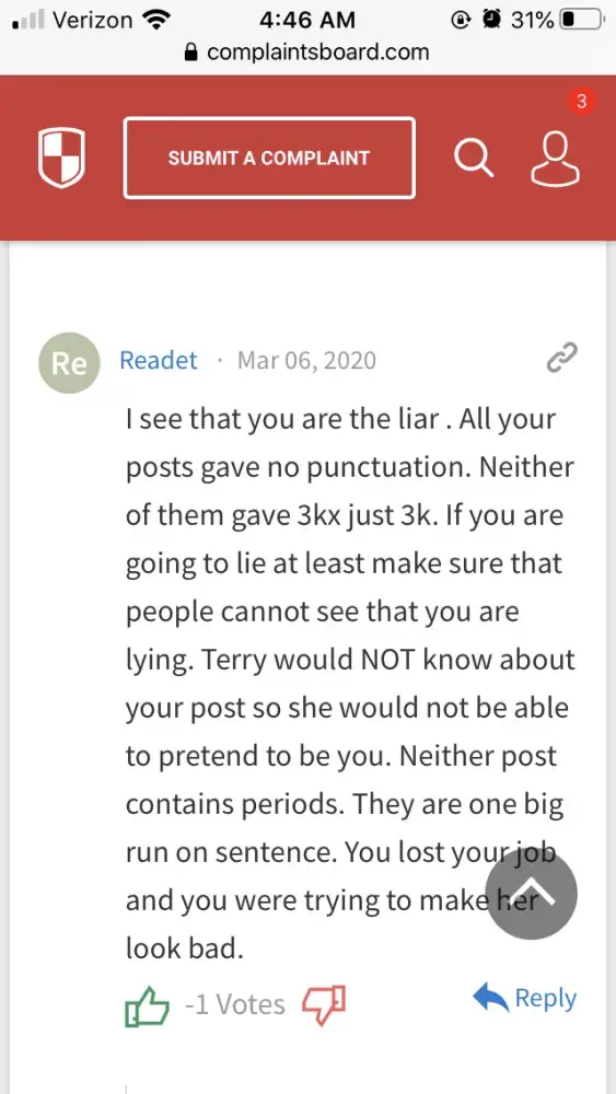 I see that you are the liar . All your posts gave no punctuation. Neither of them gave 3kx just 3k. If you are going to lie at least make sure that people cannot see that you are lying. Terry would NOT know about your post so she would not be able to pretend to be you. Neither post contains periods. They are one big run on sentence. You lost your job and you were trying to make her look bad.
