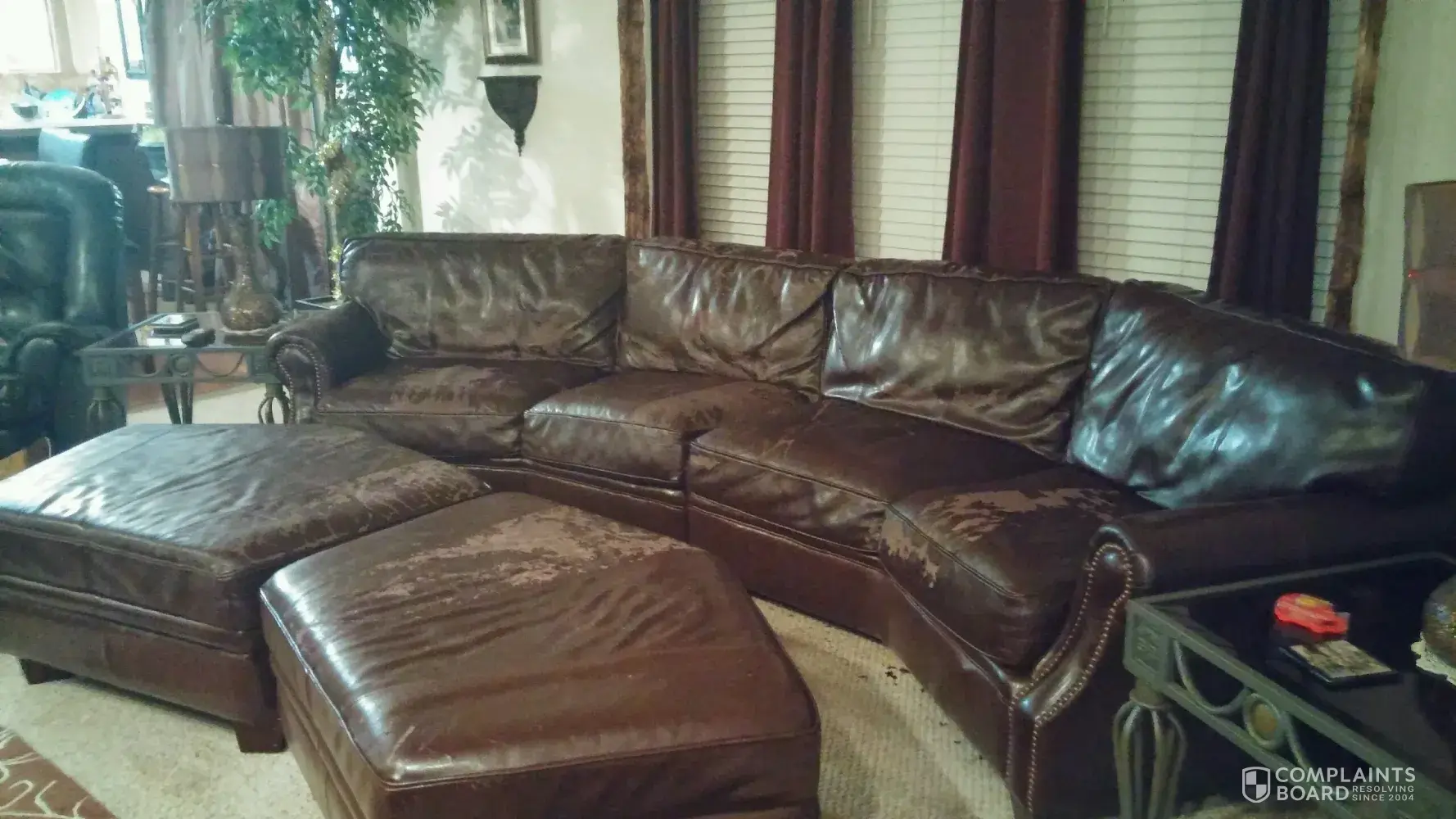 I purchased a leather sectional and two foot stools in 2005 from American Signature for 2, 500. I have to keep it covered. It peels daily. It looks terrible.