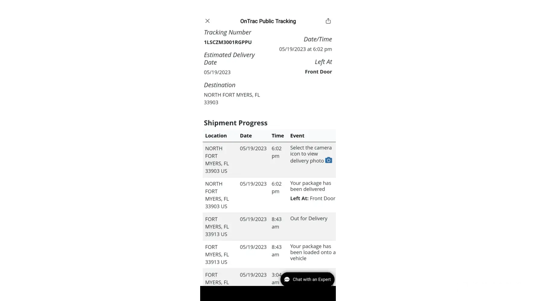Correction Delivery Date is 5/19/2023. See Attachment of the Date and Time.