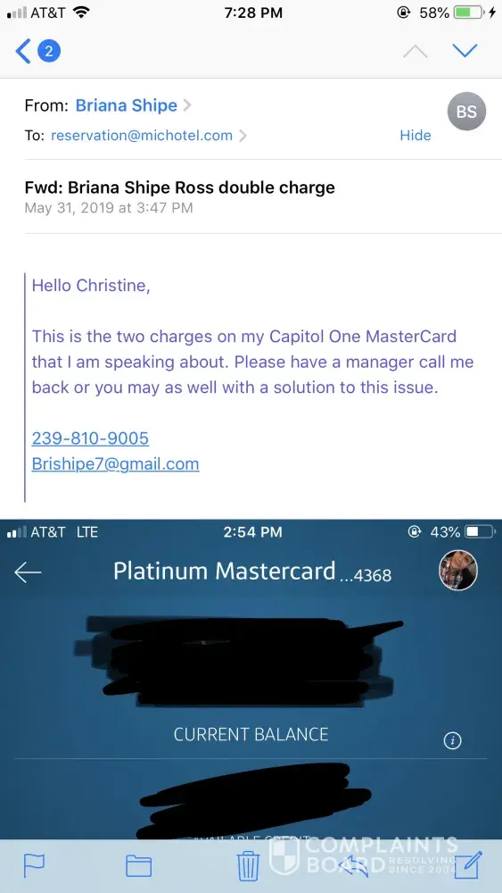 You will also see the first email I sent to the reservations manager and you'll see a more detailed email I sent to the gm.