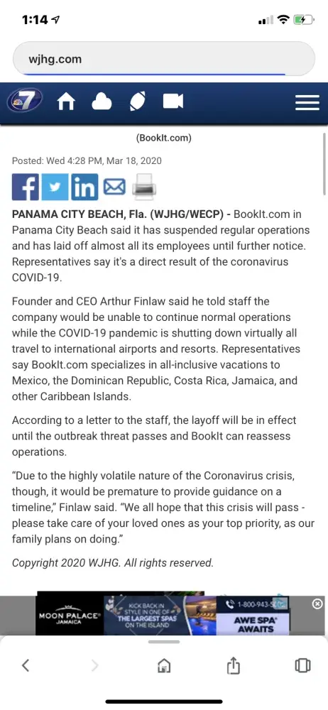 Received email notice that my $1400 trip was cancelled. Tried to get into contact with the company and their phones are turned off, only a robo-message playing before disconnecting. I tried emailing customer service and it said my email was blocked. Now I’m left holding the bag, out $1400 without a solution from the company. I’ve contacted my bank and filed a claim for the charges. Hopefully I get refunded. Not fair to the consumer to operate like this.