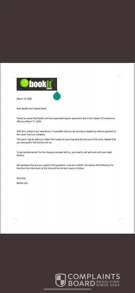 I booked with bookit.com called to confirm my stay and they have not paid the hotel but have taken all of my money out of my account I need something to be done about this because they have closed they company they have consistently taken upon themselves to take each payment and gave customers no notice as to they were shutting down but contacted the hotels and informed them that they were not going to pay them that we had to pay again