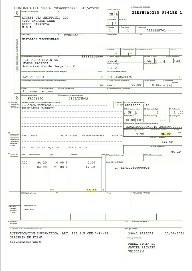 Fact #6 As seen in Exhibit 5, the import duties paid by FedEx was 17.68USD.