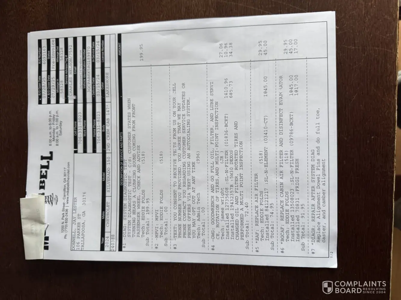 The basic left the alignment pins out of my truck and it starting knocking and I had to get Chevy to fix it and it cost 680.00 to fix. The tech was negligible and I am not taking the 130 refund for alignment. I have tried contacting the training manager and no response. I am prepared to move forward if I don’t get a satisfactory outcome. This is the second time I have filed a complaint. The company acts as this is not a problem