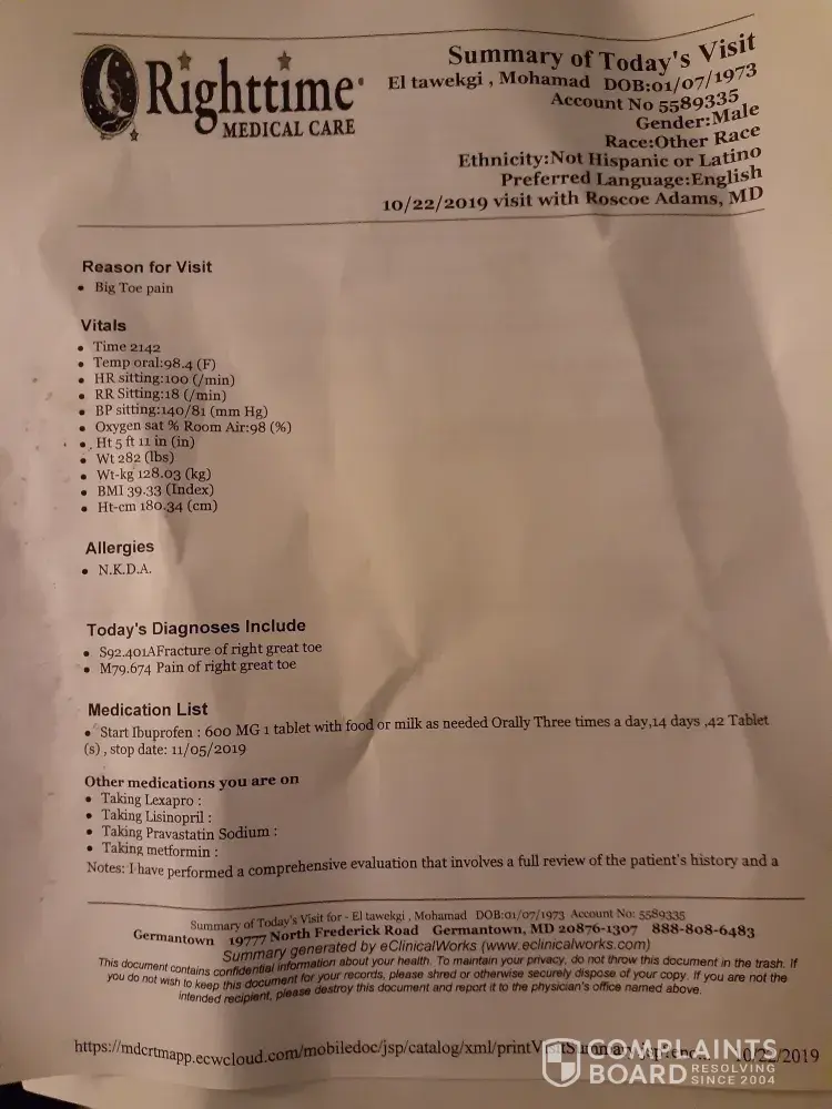I was shopping and walked to the register to pay for my items. I bumped my foot on one of the shelves that was on the floor in the middle of the aisle. I paid for my items and checked on my toe and was in pain. I asked the cashier for the supervisor and she didn't do anything. I asked her to file an incident report and waited for her to return. After a long time she came back and provided me a blank piece of paper to write my contact info and what happened to my foot. The supervisor's name is Sonia and the SPS is Roman. I'm very disappointed. I decided to go to the urgent care to have my foor examined. They x-rayed it and told me I have a fracture in my right big toe. I will have to wear a boot for a month because if this.