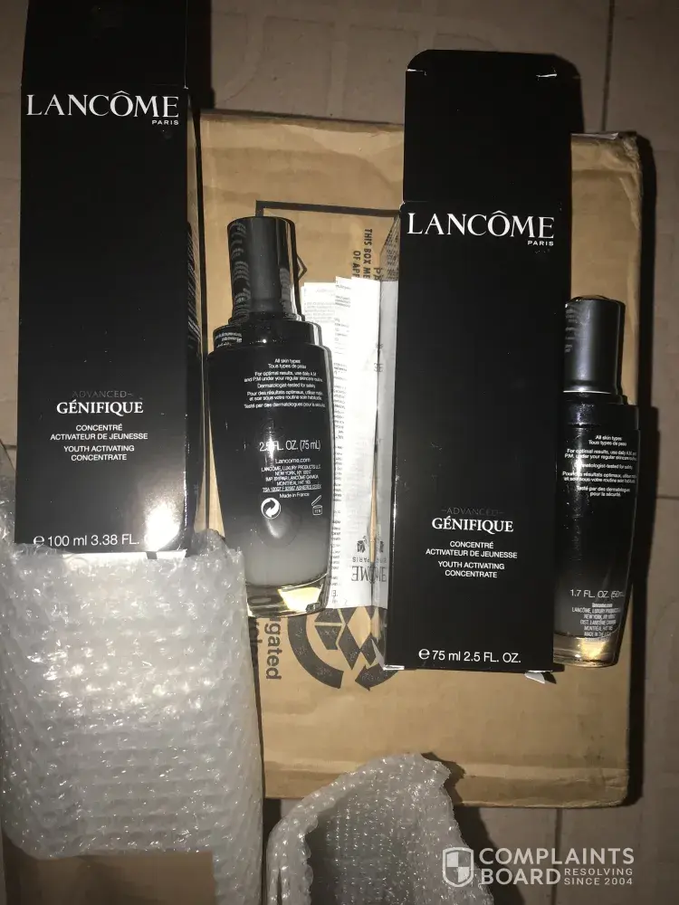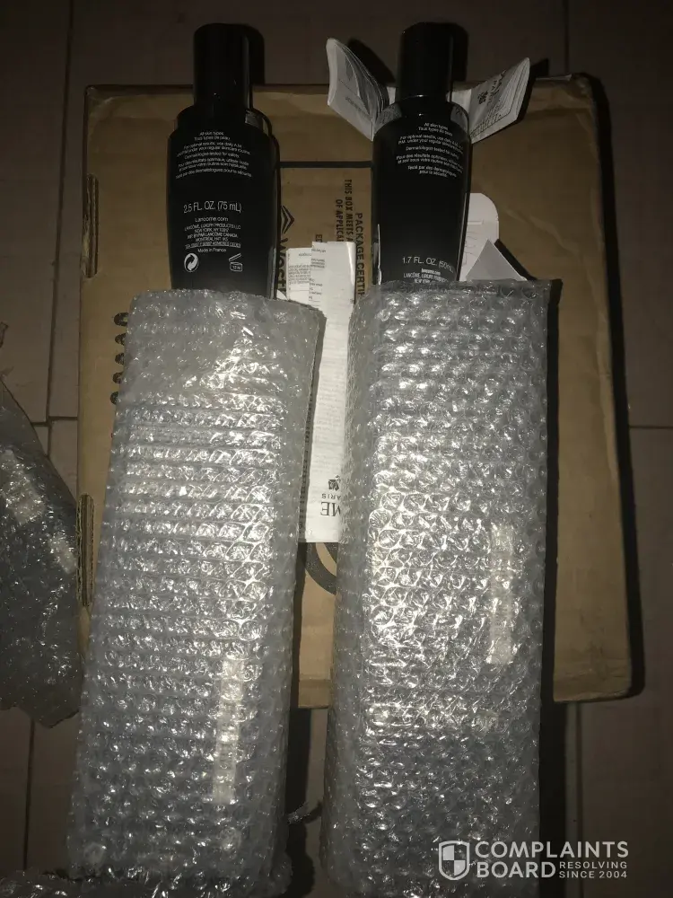 And a 2.5-ounce bottle of Lancome. The packaging is very rough.