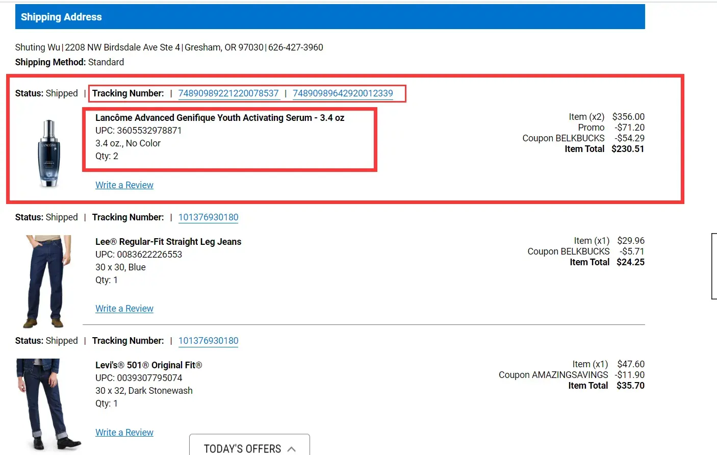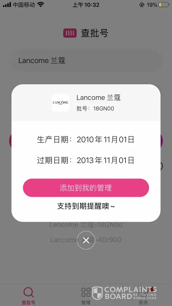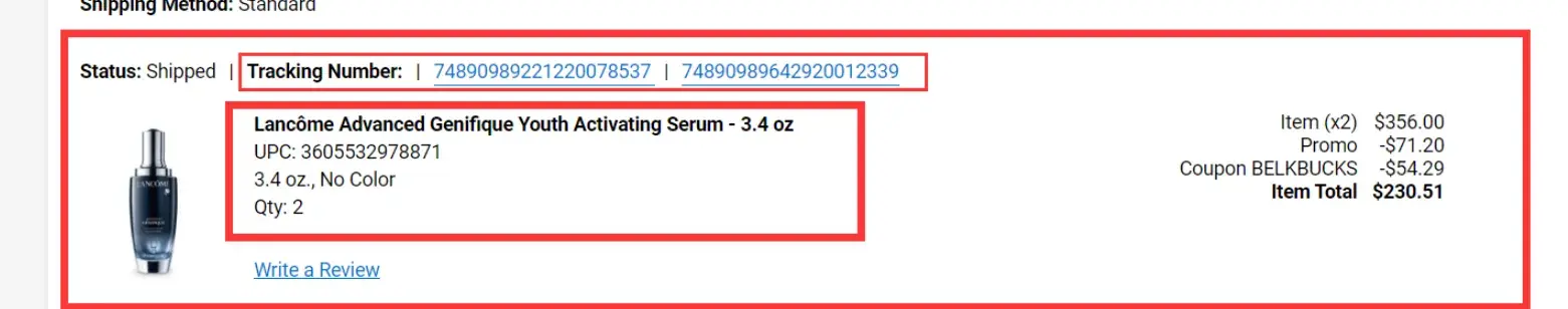 Belk only sent me a 1.7oz bottle of expired goods, the product is valid for 2013. and a 2.5oz bottle of Lancome.